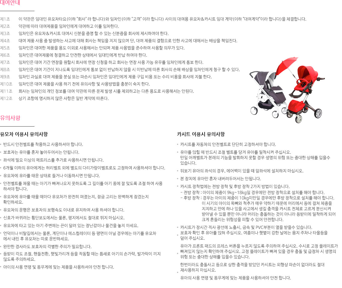 카시트 / 유모차 대여 안내입니다.